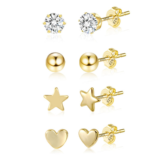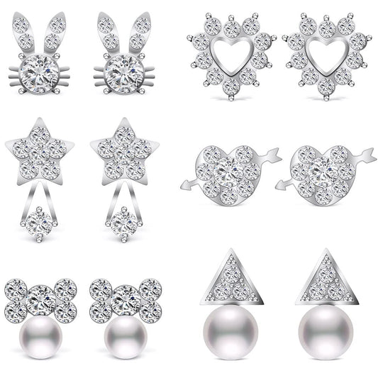 4 Pares de Brincos ASH'S CHOICE Prata 925 p com pedras de Zircônia