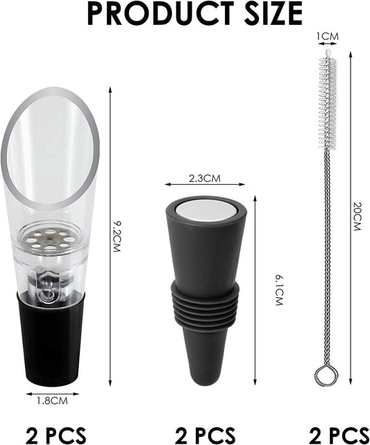 2 lixeiras de vinho, 2 rolhas de vinho, 2 escovas de limpeza, dispensador de vinho tinto, ajuda para derramar vinho, enchimento de vinho para casa, acessório para derramar vinho, despejar vinho