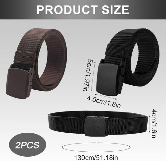 2 unidades unissexo Gürtel Nylon Canvas Belt für Damen und Herren, cinto de cintura de nylon 130 cm, largura 3,8 cm, fivela de plástico resistente, ideal para viagens, caminhadas e uso diário, Preto