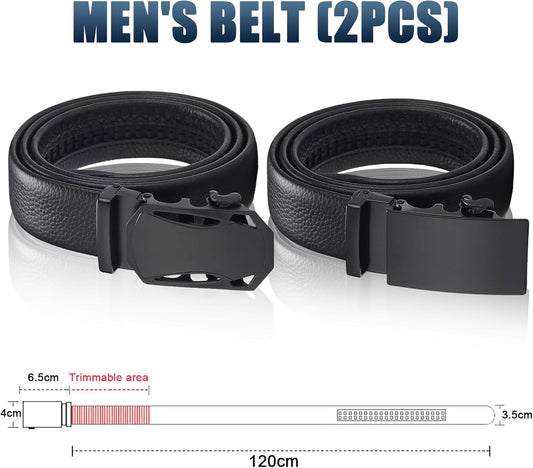 BDSHUNBF 2 Pcs Cintos homem couro, cinto homem couro com fivela automática catraca, cinto automático para homem 35 mm tamanho ajustável, cinto elástico homem cinto de couro homem, 2 unidades