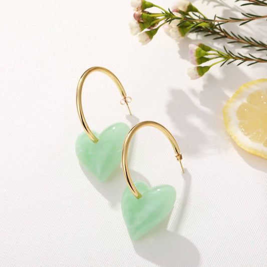 Lovelika - Brincos de argola com coração em resina - Faustine